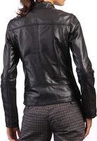 Women Slim Fit Lambskin Black Leather Jacket: